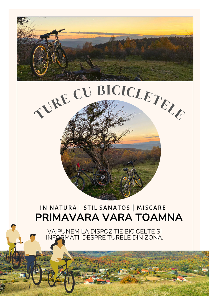 Zona noastra are nenumarate trasee de biciclete, iar peisajele, apusurile si padurea le fac intr-adevar spectaculoase. Noi va punem la dipozitie biciclete si o lista cu traseele pe care le puteti face. *Detalii despre preturi si disponibilitate la fata locului.
