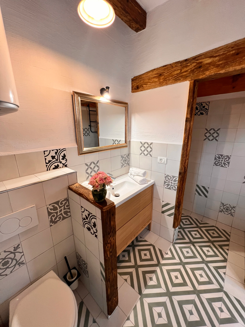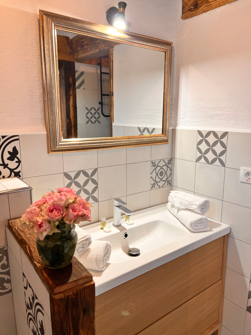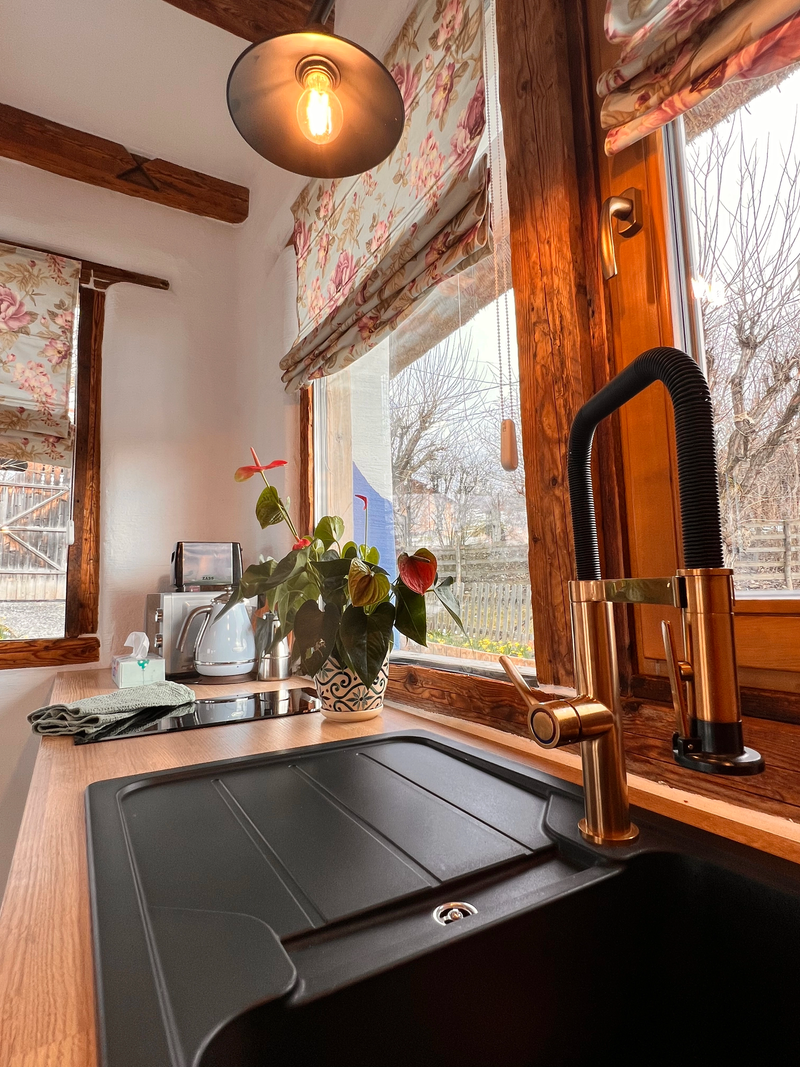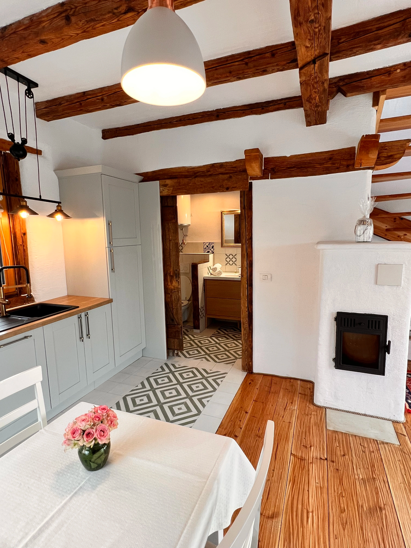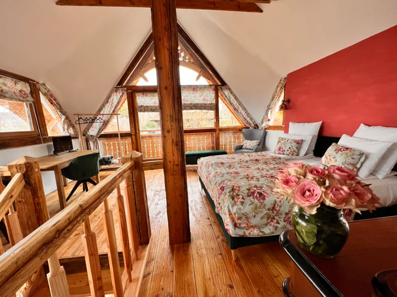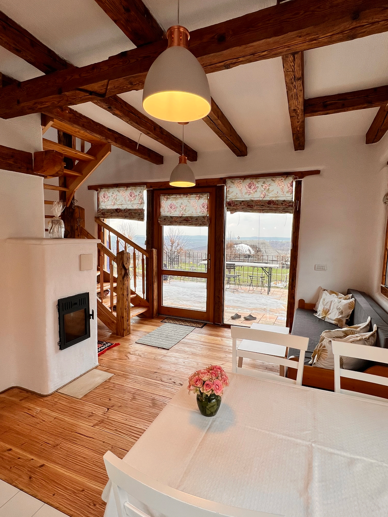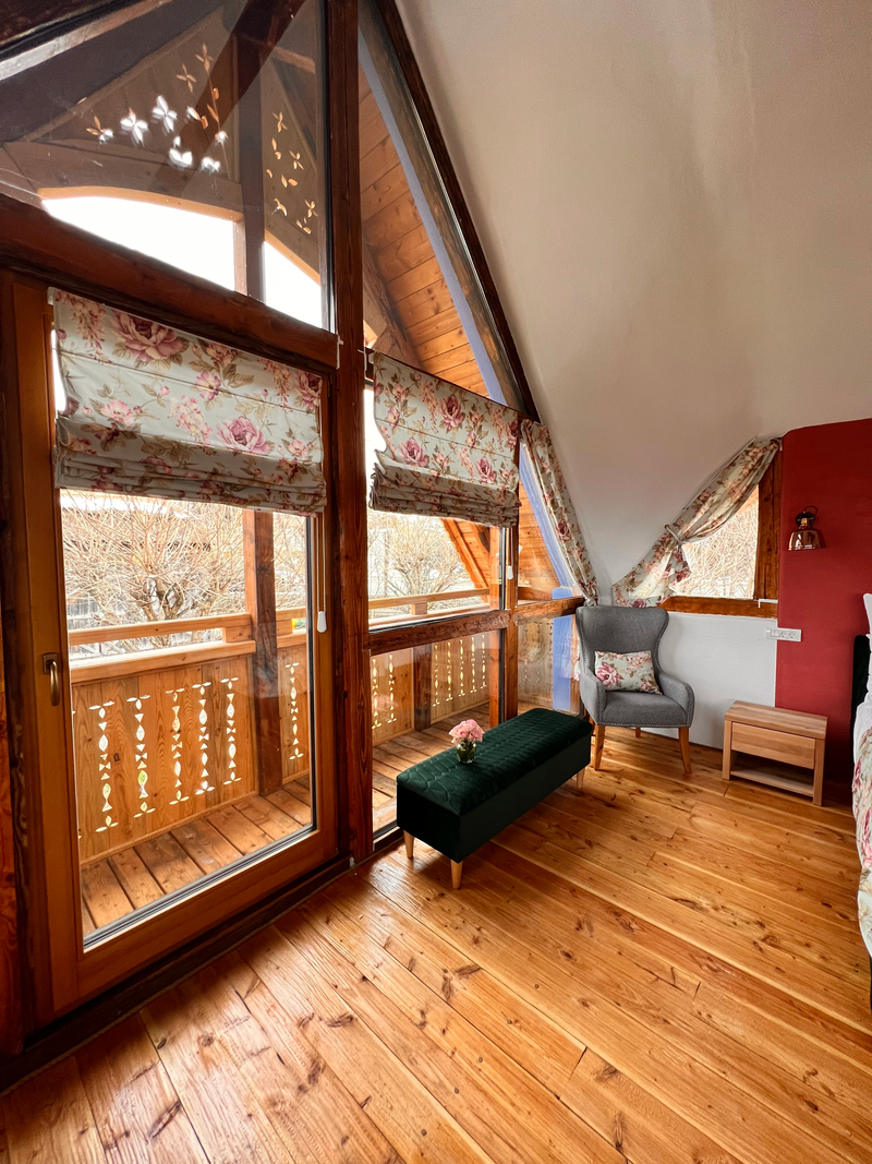 Tare mult ne plac forile si gradina noastra e plina cu ele. Asa am ales sa aducem un pic de roz in acest apartament. Ca si celalate apartamente si cel al florilor are un living mare si spatios, un semineu pe lemne care emana o caldura placuta si un semntiment de camin. Bucataria este dotata cu toate cele necesare, baia are incalzire in pardoseala si un dus al carui perete este incalzit de semineu. In dormitorul se urca pe o scara de lemn frumoasa, acesta este spatios, cu un pat matrimonial, un fotoliu de citit si un birou.