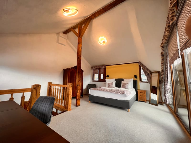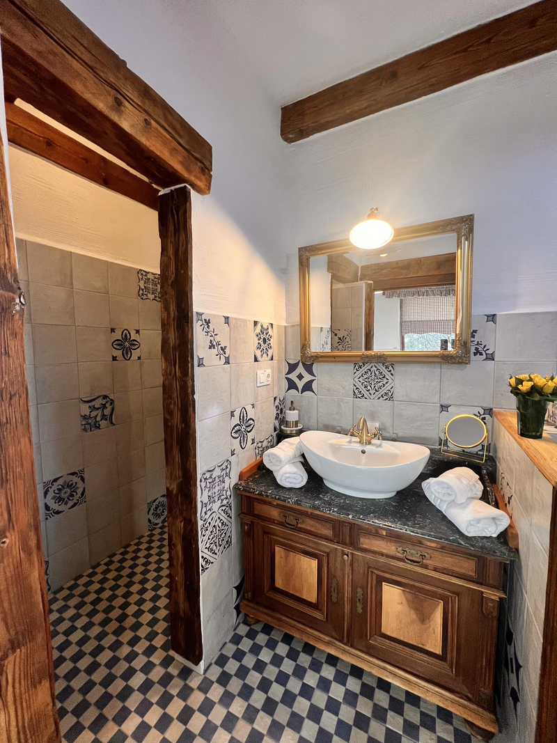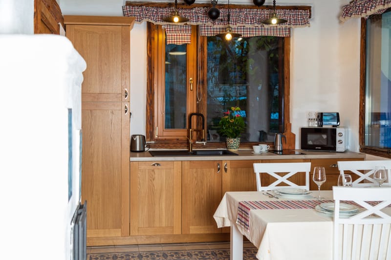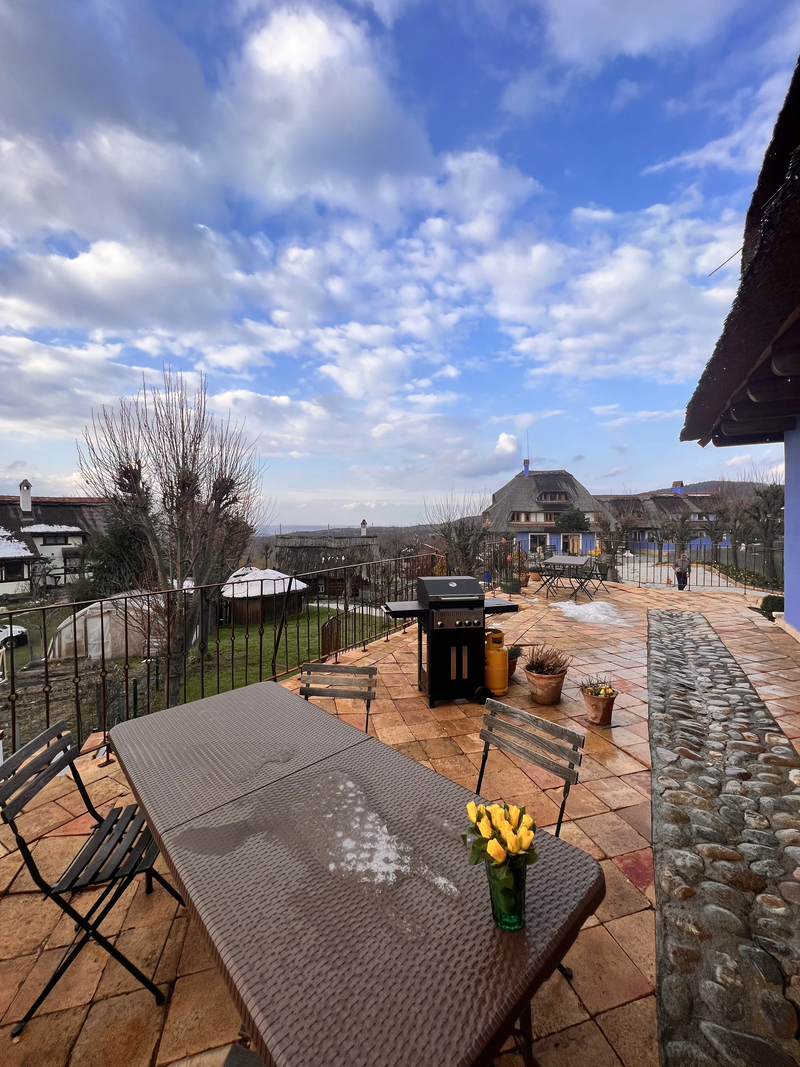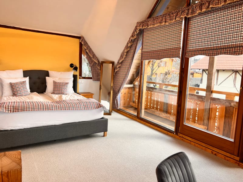 In fiecare seara apusul ii incalzeste ferestrele prin jocul de lumini, asa culoare peretelui dormitorului a primit atingerea galbena. Are un living mare si spatios, un semineu pe lemne care emana o caldura placuta si un semntiment de camin. Bucataria este dotata cu toate cele necesare, baia are incalzire in pardoseala si un dus al carui perete este incalzit de semineu. In dormitorul se urca pe o scara de lemn frumoasa, acesta este spatios, cu un pat matrimonial, un fotoliu de citit si un birou.